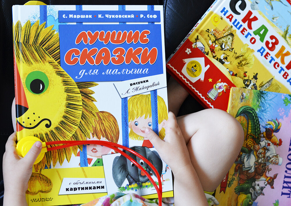 Я в домашней библиотеке обнаружила 4 разные книги со стихотворением Корнея Чуковского «Айболит». Текст, естественно, везде одинаковый, а вот оформление совершенно разные. И каждой книге находится свое время для чтения. Книга «Сказки нашего детства» с рисунками Михаила Карпенко издательства «Малыш» - «Айболит» для спокойного чтения. Там очень интересные, неяркие серо-желтые иллюстрации. А вот книжка-панорамка издательства «Росмэн», где каждый разворот – объемные иллюстрации для активного времени. Дочка внимательно их рассматривает и, как мне кажется, сама история ее интересует куда меньше. Еще у нас есть звуковой «Айболит» от «Азбукварик». Он спасает меня, когда я устала и мне не хочется много читать. Или у меня много домашних дел. Дочка вполне самостоятельно жмет на кнопочки. Правда пока, в совершенно произвольной последовательности. Наш самый новый, четвертый вариант – сборник «Лучшие сказки для малыша» с рисунками Лии Майоровой издательства «Малыш». В книге на первом и последнем р