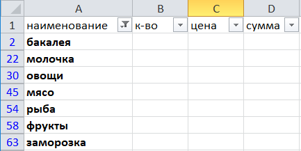 Всем привет! Залог соблюдения бюджета на питание - правильно составленный список продуктов. Для начала разделим все продукты на разделы: Бакалея включает в себя крупы, макароны, специи и проч. Молочка - молоко, яйца, кефир и проч. И так далее, список подгоняете под себя. Для простоты составления списка, ставим в стоблце "к-во" нужное количество товара, фильтуем столбец и получаем следующее: После похода в магазин вносим в таблицу цены товаров, сумму чека вносим в соответсвующую статью бюджета. В дальнейшем доработаю таблицу: перенесу в облако, сделаю синхронизацию между смартофоном и ПК. Добавлю даты для отслеживания роста цен и группировку по разделам. Всем спасибо за внимание!