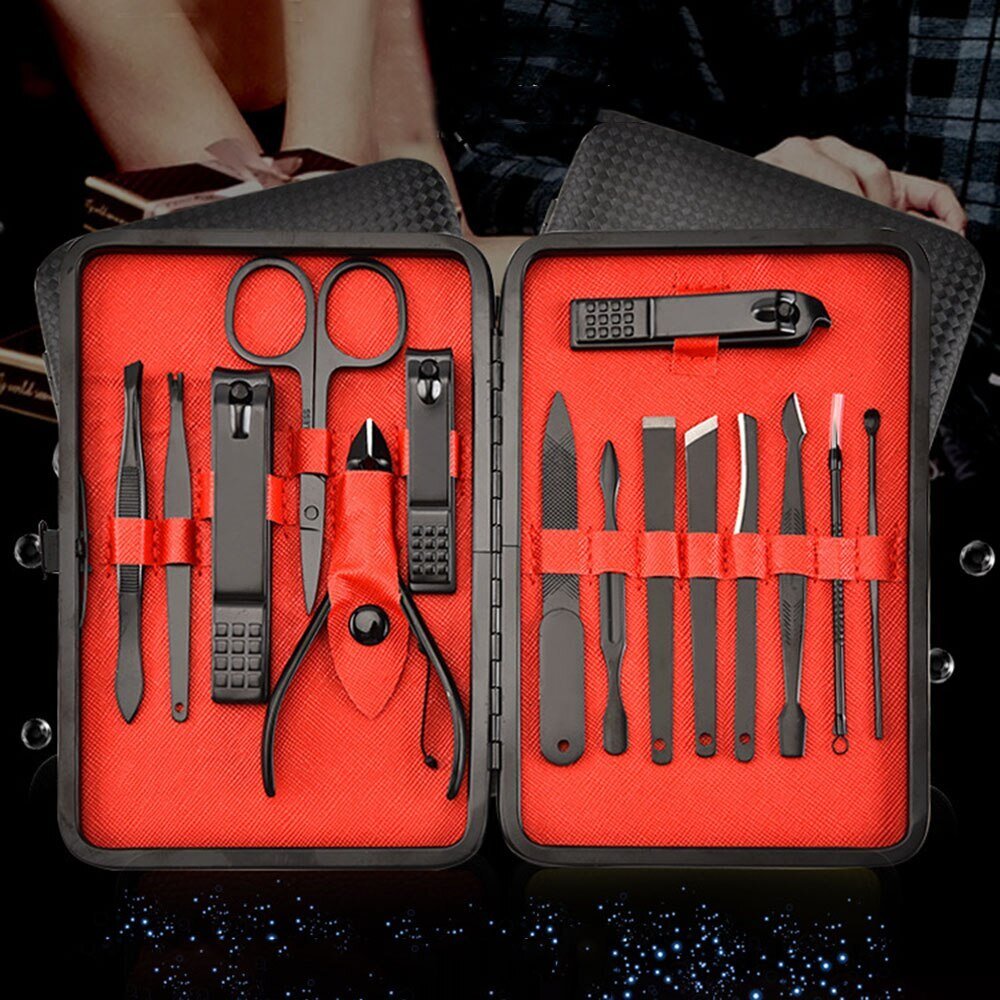 Имеется чехол для хранение, стильный и элегантный, приятный для хранения всех ваших инструментов. Каждый из инструментов в черном цвете , заточен вручную, что позволит владельцу осуществлять качественный уход за ногтями в удобное для него время в домашних условиях. Этот маникюрный набор – прекрасный выбор, как для женщин, так и для мужчин. Инструменты упакованы в стильный чехол. В комплект входят 18 средств: Ножницы, ложка уно, кусачки для ногтей, щипчики для кутикулы, пинцет для бровей, пилка для ногтей и т.д Товар для ежедневного использования или путешествий, а также отличный подарок для вашей семьи, друзей или коллег.