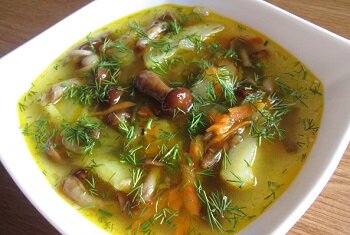 зелень Шаг 1 Грибы промыть, замочить на 1-2 часа в 2х литрах воды. Полученный настой профильтровать, поставить на огонь, добавив 1-1,5 литра воды. Грибы повторно промыть, откинуть на дуршлаг. Шаг 2 Картофель очистить, нарезать кубиками, добавить в кипящий грибной настой. Шаг 3 Обжарить лук на растительном масле, добавить морковь, Шаг 4 затем грибы, все вместе обжарить, присолить,добавить в кастрюлю. Шаг 5 Варить до готовности картофеля. За 5-7 минут до окончания варки добавить лавровый лист,