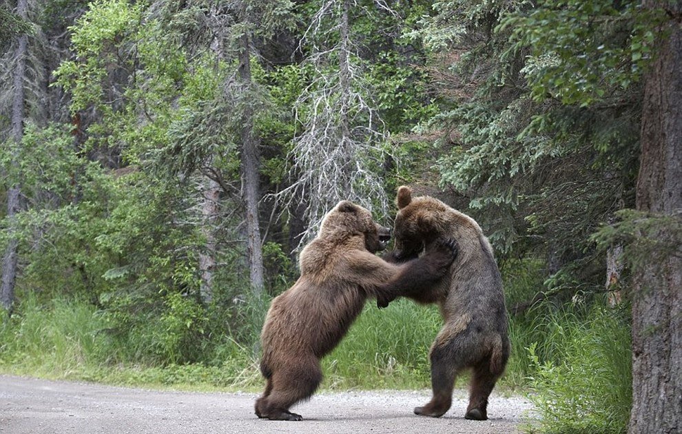 Round 1. Fight! Это было обычное утро. Типичный американец заварил себе кофейку и пошел проверять почтовый ящик, чтобы почитать свежую прессу, когда услышал во дворе необычные звуки. Пение птиц заглушал дикий рев двух дерущихся барибалов на его лужайке. Забавно, что в этот момент во дворе соседа прогуливалась медведиха, вероятно, и ставшая причиной спора двух барибалов. Смертельная битва медведей была выложена в сеть. Вот так медведи выбрали за мужичка, пойдет он сегодня погулять или останется дома, чтобы посмотреть сериальчики. Отметим, что это не первая ситуация с проникновением медведей на участки американцев. Ранее американка обнаружила трех медведей в своем джакузи. Похоже, что русские уже начали широкомасштабное вторжение, а Трамп ничего не подозревает.