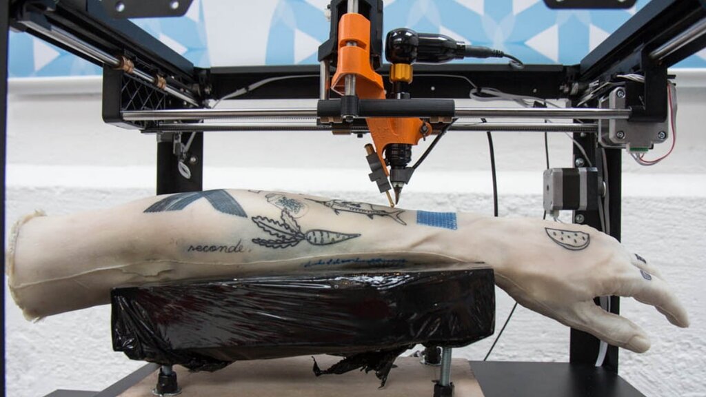 Еще пол века назад считалось фантастикой присутствие в жизни людей роботов. А сегодня мы не представляем свою жизнь без них. Роботы помогают человеку практически во всех сферах его деятельности. Они заменяют людей на тяжелых или опасных для здоровья производствах, их точность позволяет проводить сложнейшие операции и создавать микро-детали. Не обошла робототехника и сферу татуировки. Французские инженеры Йохан да Сильвейра и Пьер Эмм создали первого в мире робота-татуировщика. В целом робот-татуировщик представляет из себя роботизированную машину для нанесения татуировки на тело человека. Робот оснащен специальной иглой и 3D принтером. В целом выглядит машина достаточно массивно, рабочая рука робота больше человеческой ноги, однако можно только поразиться точности механизма и деликатности в работе. Примечательно, что подобные роботы уже используются в производстве, например, на конвейере при сборке автомобилей и другой сложной техники, где необходимо применение точности и большой сил