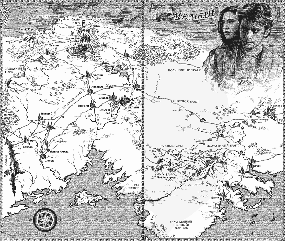 Мир Мельина состоит из трех континентов. Которые носят не очень оригинальные названия – Северный, Восточный, Южный. Главный из этих континентов Северный. Главный, потому что именно на нем заостряет внимание Перумов в своих книгах, там же проживают основные расы и главные герои.