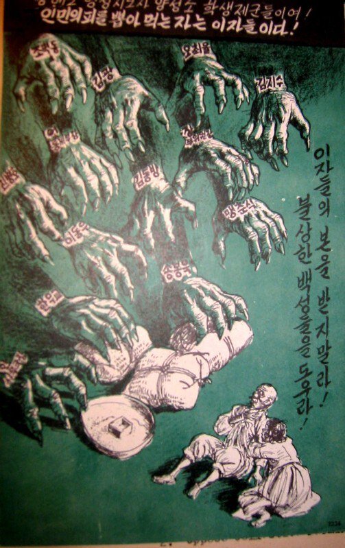 Появилась у нас идея показать нашим дорогим подписчикам корейские агитплакаты. Многие, конечно же, скажут, что пропагандистских материалов Севера - хоть пруд-пруди. Поэтому и возникла мысль порыться в тайных погребах и архивах южного соседа, дабы всесторонне продемонстрировать работу пропагандистской машины Юга. Данный цикл будет состоять из нескольких частей по 3 темам: война (понятно, какая), антикоммунистическая пропаганда и, безусловно, экономический рост. Перевод и примерный контекст данных произведений агитационного искусства само собой прилагается. 1) Ким Гван, О Чхвеюль, Ким Джису, Хан Угё, Сон Бонок, Мэн Чхунсик. "Не берите пример с этих людей! Помогите страждущим крестьянам!" 2) Пак Хонъён - министр иностранных дел КНДР, революционер, лидер Трудовой Партии Южной Кореи. Был казнен в ходе кадровых чисток в 1956, проводимых Ким Ирсеном с целью централизации власти и избавления от советской группировки. Как можно видеть, ближайшие соратники по революционному делу Пак Хонъёна и