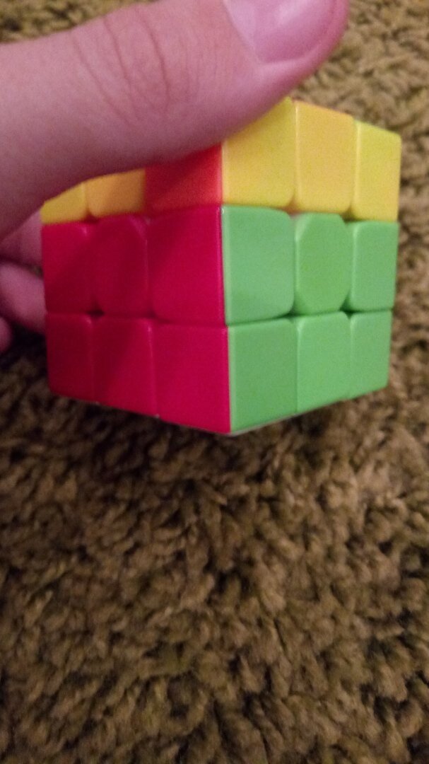 Если вы не видели 2 урок , то перейдите и возвращайтесь учиться собирать головоломку под названием - 'Кубик Рубика' Теперь нам нужно собрать второй слой - Снова берём белым цветом вниз и ищем сверху блок без жёлтого цвета и ищем два подходящих к нему центра по цвету отводим красно-синий (или какой в вашем случае) блок от его центров Берем чтобы синий был слева , а красный смотрел на вас и делаем 'Левый пиф-паф' - LUL'U' .Теперь берем чтобы красный был справа , а синий смотрел на вас и делаем обычный пиф-паф - RUR'U'. У вас должно было получится вот так - Поздравляю если вы всё сделали правильно , то у вас собрался второй слой Продолжение смотрите в третьем четвёртом на моём канале)!
