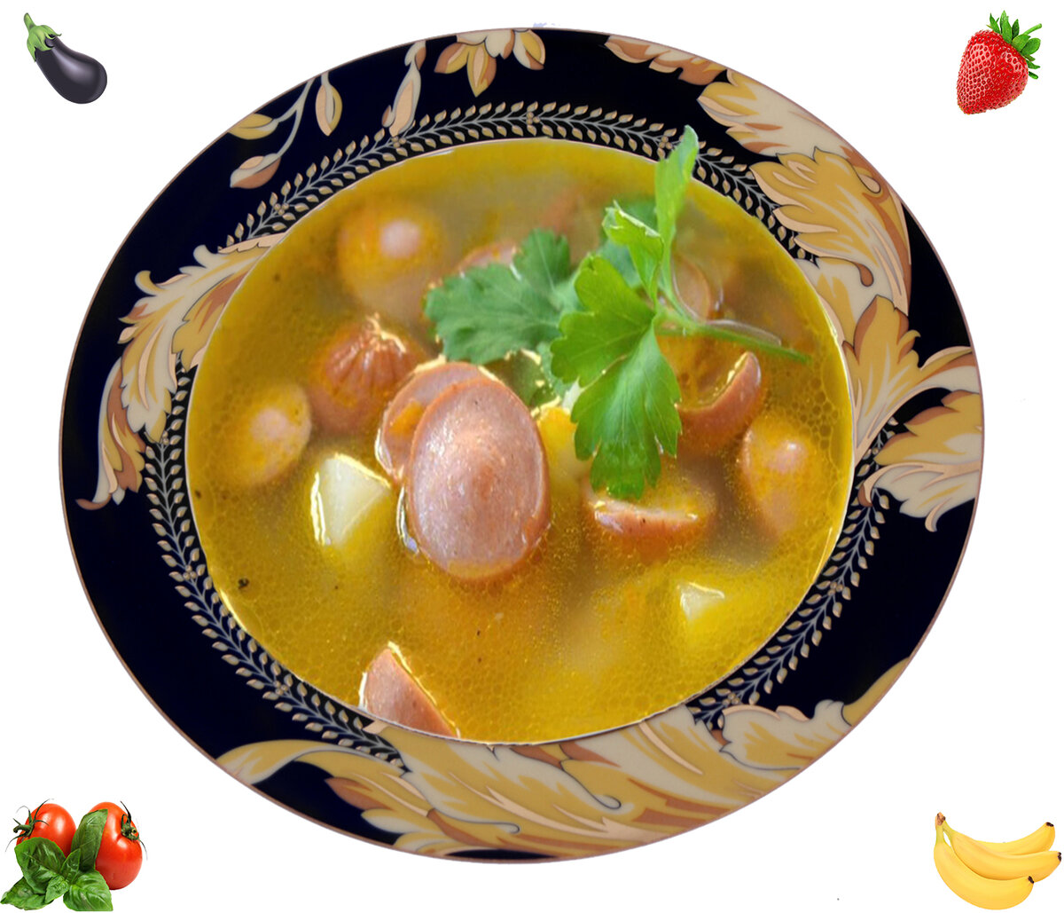 провариваем на медленном огне 15 минут. Нарезанные сосиски и ветчину небольшими