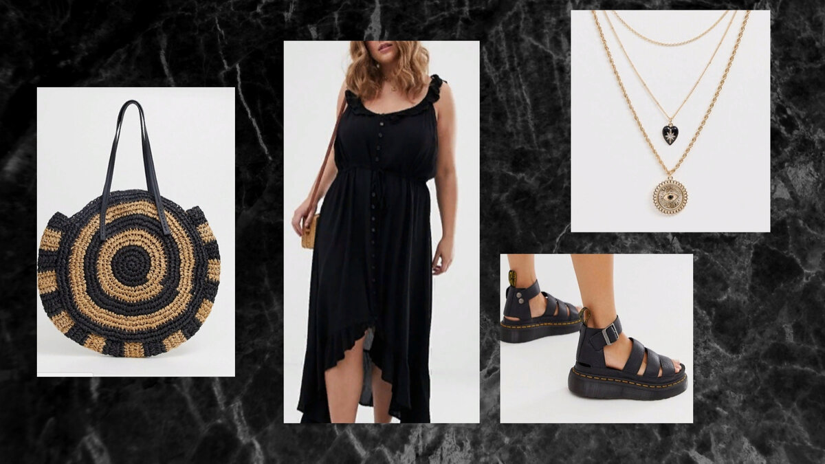 Полностью черный образ – это может быть как некрасиво, так и эффектно. Все дело в маленьком секрете, который следует соблюдать при составлении того или иного лука в черных тонах. Какой это секрет? Давайте разбираться. Отдых Простое платье с ассиметричным подолом, многослойная подвеска, трендовые грубые сандалии и пляжная сумка необычной формы. Романтический вечер Шелковое платье, круглая структурная сумка, босоножки на танкетке, ассиметричные серьги и лаконичная подвеска. Дерзкий на выход Классная поясная сумка, платье-мини, агрессивное колье из цепей и крупные золотые серьги. Все это уравновешивают классические мюли. Свободный Поиграем с кюлотами: добавляем летний топ, огромные серьги-кольца, босоножки на комфортном каблуке; женственность уравновесим поясной сумкой. Прогулочный Яркий образ из черных джинсов прямого кроя и базовой черной футболки; добавляем аксессуары: цепи и многочисленные кольца. В качестве обуви подойдут обычные кеды. Провокация Брюки карго - изюминка этого образа.