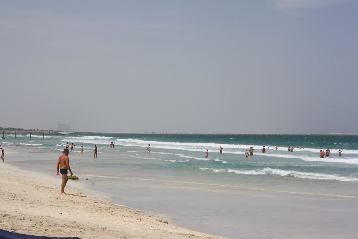Как уже ясно из заголовка статьи - находится он на 1 береговой линии. Одна минута и вы уже на отельном пляже с собственными бесплатными лежаками и зонтами, не надо идти по изнурительной жаре со 2 или 3 линии, ехать на трансферном автобусе и не надо платить за вход на пляж (а для многих отелей Шарджи вход на пляж платный!). Пляж с мелким белым песком и идеальным входом в море! А какое море в ОАЭ - шикарное и лазурное!