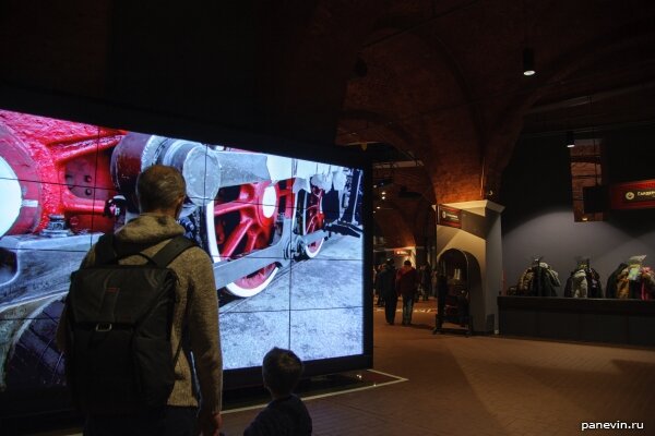 У каждого экспоната установлены сенсорные экраны с тотальным описанием ТТХ и истории конкретного вагона / паровоза / тепловоза / электрички.