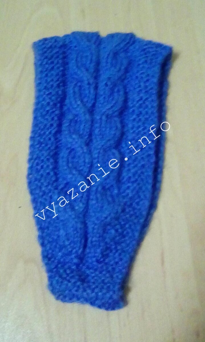 У меня получилось всего 15 перехлёстов в косах. Убавлять петли будем также симметрично, как и прибавляли. То есть, сделали 14-й перехлёст в косах, провязали ещё 2 лицевых ряда и убавляем в лицевом ряду 2 петли в середине (в тех местах, где были накиды). Когда на спицах осталось 11 петель, все петли закрыть. Сши