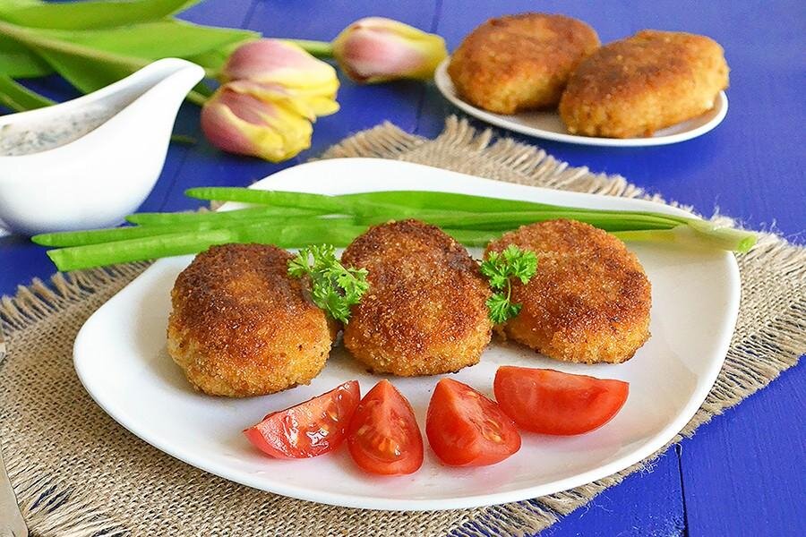 Ингредиенты: Способ приготовления: Если филе минтая у вас замороженное, то предварительно его разморозьте, слейте лишнюю жидкость, удалите остатки косточек и пропустите филе через мясорубку или измельчите в блендере. В сковороде разогрейте растительное масло. Очистите репчатый лук, вымойте его и нарежьте мелкими кубиками. Пассеруйте лук на масле до золотистого цвета. Морковь очистите и вымойте. Натрите ее на мелкой терке или измельчите в блендере. Добавьте к рыбному фаршу обжаренный лук, морковь, специи, соль, вбейте сырые яйца. Все тщательно перемешайте. В сковороду налейте растительное масло и разогрейте его. Затем сформируйте из фарша котлетки и обжаривайте их до золотистой корочки с обеих сторон на масле в сковороде. Ещё больше рецептов рыбных колет из минтая можно найти на сайте bystryerecepty.ru.