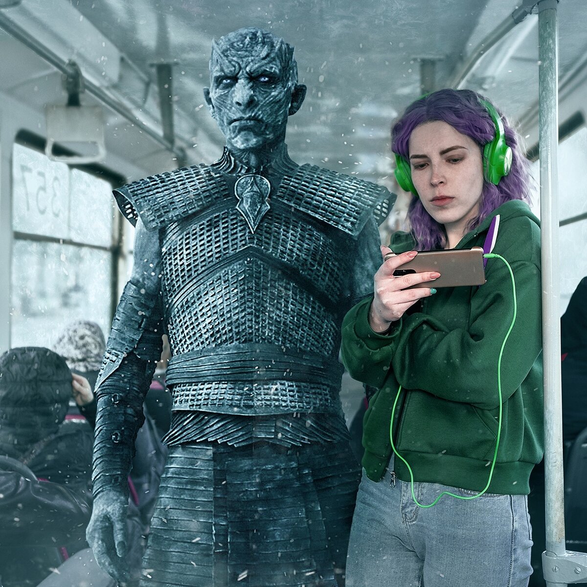 — Весь мир настолько погрузился в премьеру финального сезона «Игры Престолов», что сериал перестал быть просто сериалом. Согласитесь, теперь это неотъемлемая часть жизни. Представьте: вы настолько погрузились в атмосферу сериала, что атмосфера начала преследовать вас повсюду. В прямом смысле, — прокомментировала автор. Авторы: Родион Балков и фотохудожница Александра Чертулова