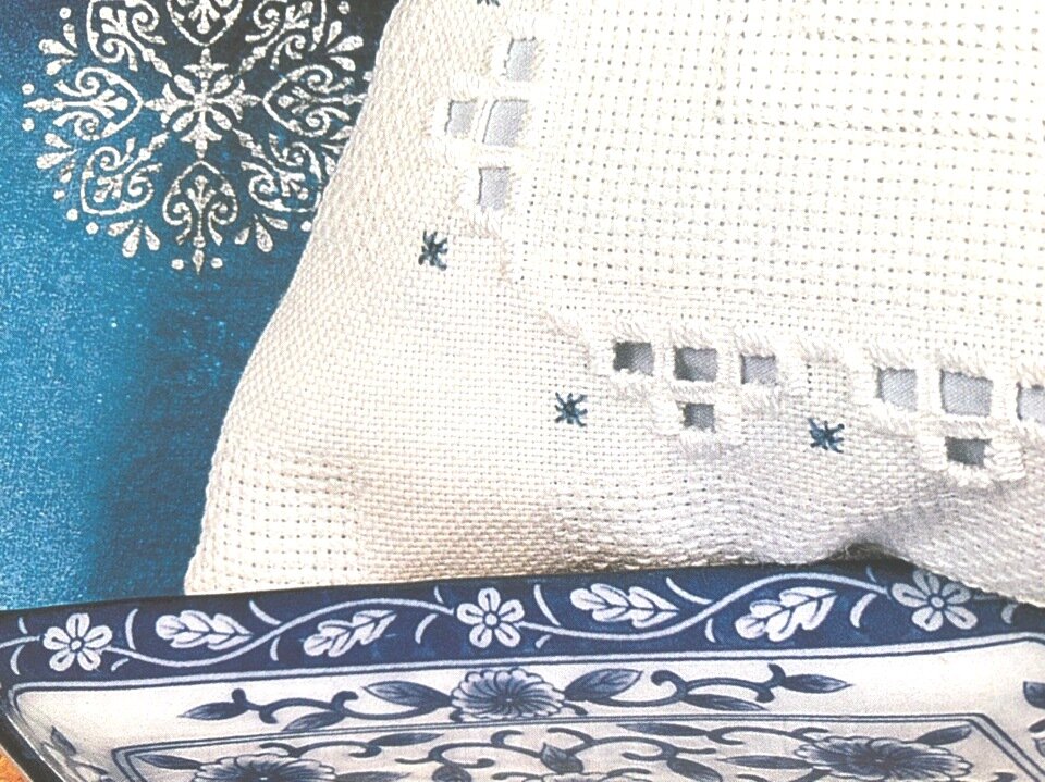 В этой статье представлена схема вышивки наволочки в стиле хардангер «Сны и сновидения». Потребуется: Композиция выполняется «решеткой» и швом«звездочка», мережкой «нанка» и швом «роспись». Шов «Звездочка» Стежки выполняются к центру. Закрепив нить на изнаночной стороне, выведите ее на лицевую сторону в точке 1. Отступите вниз на 2 нити ткани и вколите иглу между нитями ткани. Сделайте стежок по изнаночной стороне, слегка натянув рабочую нить, и вновь выведите иглу на лицо в точке 2. Вколите иглу в то же место, куда вкалывали, выполняя 1-й стежок. Аналогично сделайте остальные стежки. В результате получилась звездочка, в центре которой образовалось небольшое отверстие. Шов «Роспись» Каждый квадрат на схеме соответствует одной ячейке канвы. Шов «роспись» выполняется двукратным ходом рабочей нити. Сначала на лицевой стороне намечается контур узора, затем при ходе рабочей нити в обратную сторону заполняются просветы, оставшиеся на лицевой стороне, а одновременно закрываютс