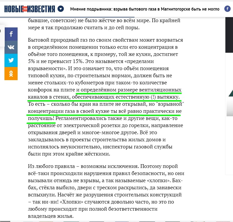 Полагаю, что после сегодняшнего взрыва газа в Ростове снова начнутся конспирологические теории и версии о том "что это не газ", а террористический акт. Снова начнутся доводы от экспертов-подрывников от МЧС на тему может или не может разрушиться здание от взрыва бытового газа. В частности по прошлым взрывам один "подрывник" высазал такое мнение. И вот такие вот доводы позволяют людям сомневаться в том, что взорвался газ, ведь "подрыкник" опытный, и говорит, что это невозможно. И обывателю в это поверить проще, чем принять вину на "себя", обывателя и согласиться, что "наши люди" сделают всё, чтобы уничтожить себя сами. Что защищало в "советской" типовой кухне от взрыва газа и почему это не работает сейчас: