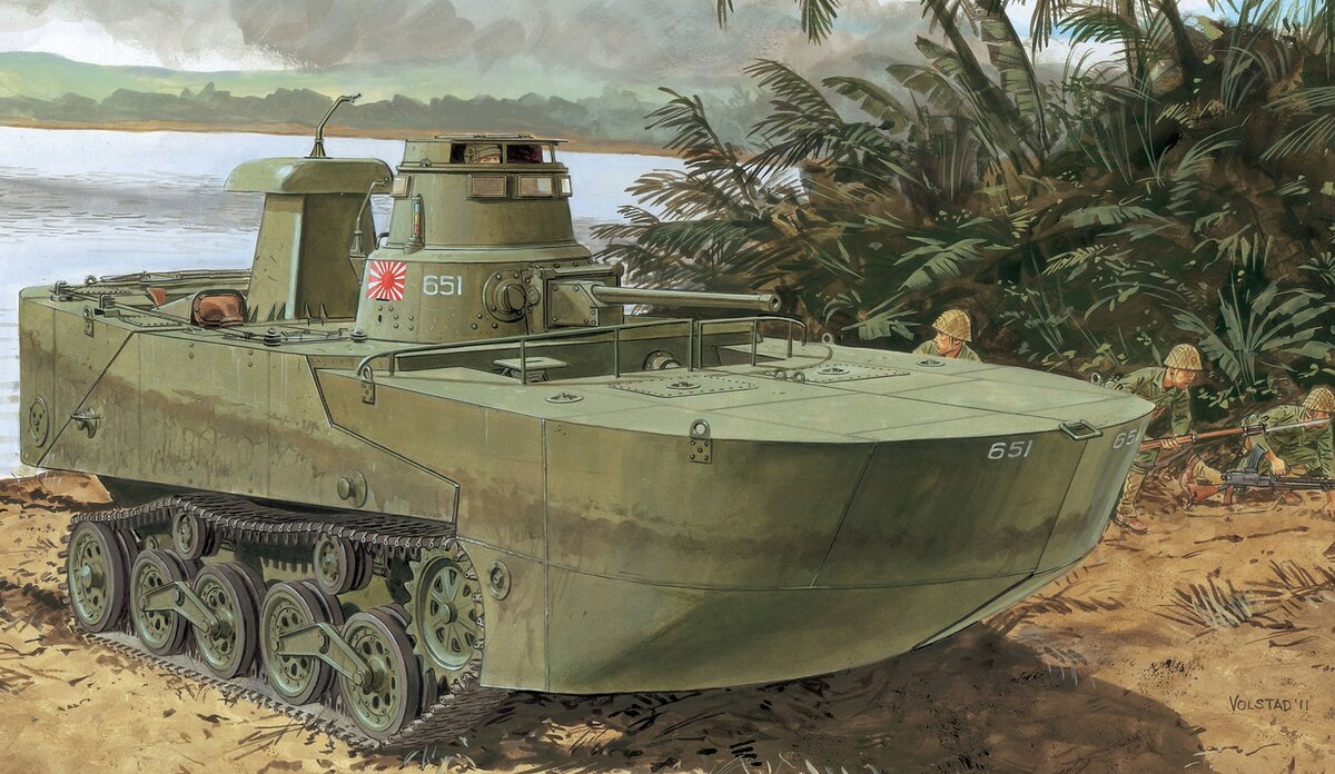 Специальный танк "Ка-Ми" был плавающим танком, произведённый фирмой Мицубиси в 1941 году по заказу Генерального штаба Японии для десантных операций по захвату островов в Тихом океане. Появился этот танк на основе танка "Ха-Го" и имел тот же надёжный дизельный двигатель и изменённую ходовую часть, пружины подвески которой убрали внутрь корпуса, а направляющие колёса опустили на землю. Герметизированный сварной корпус был немного увеличен, имел коробчатую форму и спрямлённый лобовой лист. Для плавучести танка к корпусу спереди и сзади крепились большие металлические понтоны. Доставлялись танки к месту высадки десантными судами, и сходили в воду по аппарелям самостоятельно. Хорошую мореходность и остойчивость танку обеспечивал обтекаемый корус. С помощью двух гребных винтов осуществлялось движение на плаву, они имели привод от двигателя. На варианте Тип2 1943 года выпуска, позади них устанавливались рули, связанные тросами со штурвалом в башне. Разворотами на воде управлял командир. Посл