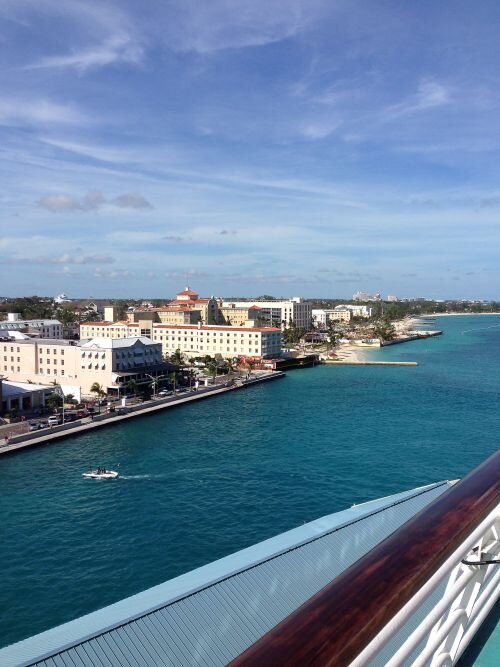 Напоминаю, мы впервые поплыли в круиз, выйдя из порта Майями, первый день из-за разрушенного острова Coco Cay мы не приставали к берегу, а целые сутки потихонечку плыли в океане в сторону Багам. И вот на третий день к утру доплыли. По расписанию у нас - остановка на день на Багамских островах, порт Нассау.