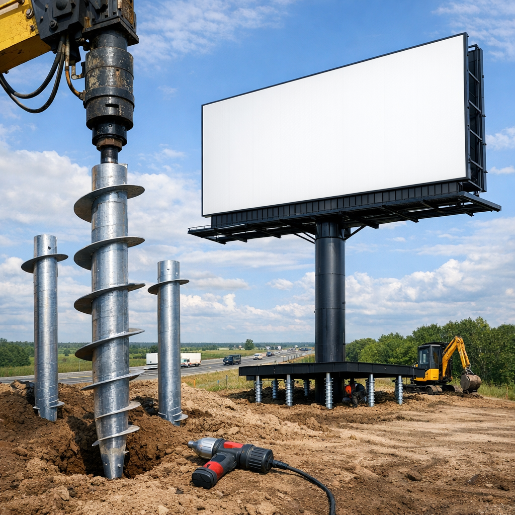 В любом современном городе найдется немало рекламных конструкций, помогающих компаниям привлекать внимание своих потенциальных клиентов. Такие щиты достаточно много весят, поэтому должны иметь прочное основание. В последнее время рекламные щиты все чаще ставят на винтовые сваи. Специалисты выделяют несколько основных достоинств данного вида опор: · Простота и высокая скорость монтажа. Установка одной сваи занимает 10-15 минут. Все необходимые действия могут быть выполнены вручную; · Относительно низкая стоимость; · Погодные условия не оказывают никакого влияния на процесс монтажа; · Универсальность. Сваи подходят для любого типа грунта, кроме каменистого; · Долговечность. Обработанные специальными защитными составами сваи прослужат 150-200 лет; · Возможность многоразового использования; · Высокая степень надежности. Перед осуществлением монтажа на участке необходимо произвести предварительные изыскания. Специалисты определяют состав грунта, глубину залегания грунтовых вод и т.д. Пол