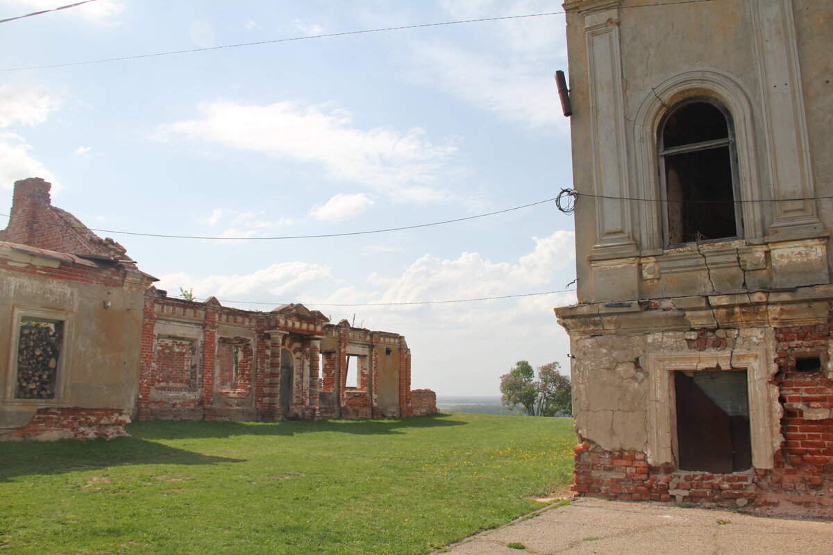 В прошедшие выходные довелось посетить интересное место в Богородском районе Нижегородской области. В селе Подвязъе расположена разрушенная в годы лихолетья дворянская усадьба Приклонских-Рукавишниковых. Дорога туда только грунтовая и проходит полем. Сама усадьба расположена на узком и высоком мысе на берегу реки Ока. С окраины обрыва открывается великолепный вид на Окские дали, пойменные луга и излучину реки. С начала XVIII века имением в Подвязъе владел дворянин Михаил Васильевич Приклонский, бывший долгое время директором Московского Университета. При нем был возведён огромный барский дом, флигель, хозяйственные и служебные корпуса и разбит сад. После победы России над французами в войне 1812 года Приклонские построили на территории имения Воскресенскую церковь, окружённую колоннами и имеющую ротонду и купол с высоким шпилем. Сейчас ее восстанавливает местная епархия РПЦ. Потом, каким именно образом точно неизвестно, но семья потомственных дворян Приклонских обнищала и в 1879 году