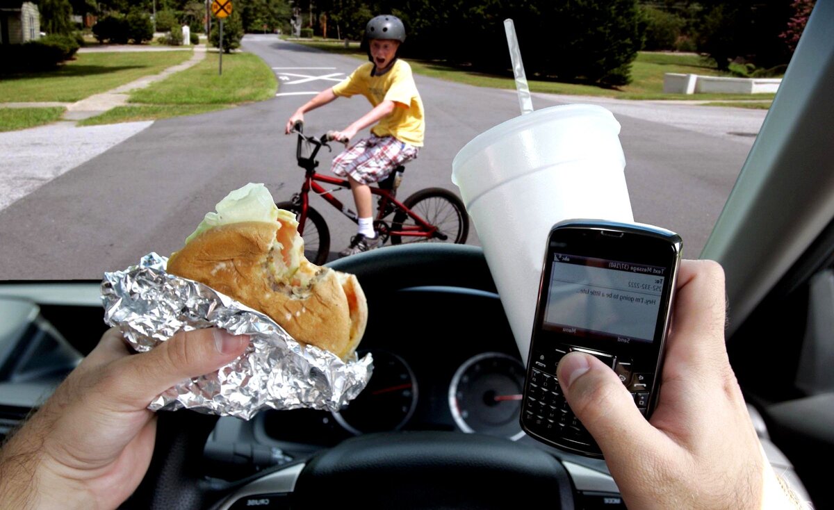Приветствуем! Оцените нашу подборку опасных занятий во время движения авто. Очень интересно, согласитесь или нет. Принятие пищи Безобидное занятие, но если оно происходит во время движения, на водительском месте, то результат непредсказуем. Человек может что-то выронить, разлить, просто отвлечься. Вероятность стать виновником аварии резко растёт. Споры в салоне Возникающее чувство агрессии обязательно отразится как на манере езды, так и на способности адекватно реагировать на дорожную ситуацию. Управление автомобилем требует спокойствия и сосредоточенности. Музыкальное сопровождение Различные стили музыки способны вызывать достаточно сильные эмоции. Из-за этого водитель может сильно снизить уровень своего хладнокровия, что повлияет на быстрое принятие правильного решения в неожиданно изменившихся условиях. А иногда шум чужого автомобиля или звуковой сигнал могут предотвратить ДТП. Мобильные телефоны Мало того, что телефонные разговоры за рулём прямо запрещены законодательно, прим