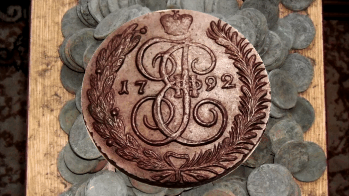 Приветствую! Дело было лет 5 назад. Поехали на поиски монет втроем. Посетили несколько распаханных полей за день, намотали километраж, но ничего стоящего не нашли! Так стандартный набор джентльмена, как говорят. И вот, незадолго до темноты, остановились возле поля, на котором была старая деревня. Начинало слегка темнеть уже. Разбрелись в разные стороны. Уже почти темно. И тут камрад кричит мне,- иди сюда пятаки будем искать. К тому времени он нашел два или три. В течении деcяти минут находим эпицентр. И там звенит все! Позвали третьего и начали их собирать. Нашли около 150 штук! Той же ночью решили сделать перекоп, чтобы не возвращаться. Устали, конечно. Шурф дело нелегкое! Фотография этого небольшого, но приятного клада: В итоге нашли около 300 Екатериниских пятаков. Среди них было пять кольцевиков. Это редкие монеты. Разумеется, клад поделили поровну. Домой приехали под утро уже. Уставшие, но очень довольные. Я под впечатлением ходил несколько дней, ведь это был первый клад наш!