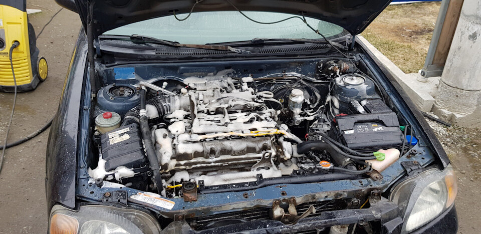 Поэтому я помыл его кёрхером, после чего набрызгал "пенным очистителем двигателя" фирмы 3тон: