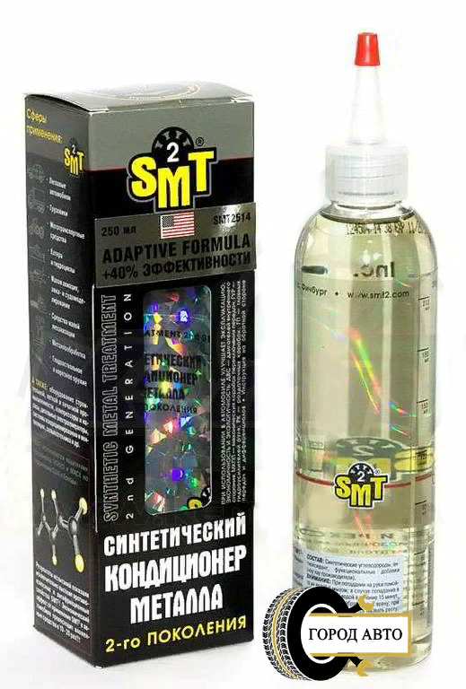 Синтетический кондиционер металла SMT2 является абсолютным фаворитом нашего автосервиса на протяжении 10 лет. SMT2 — это полностью (100%) синтетический, негорючий, коррозионно не активный, нетоксичный, биоразлагаемый антифрикционный кондиционер металла, использующий существующую смазку только в качестве носителя. Он совместим со всеми существующими смазочными материалами и спецжидкостями.