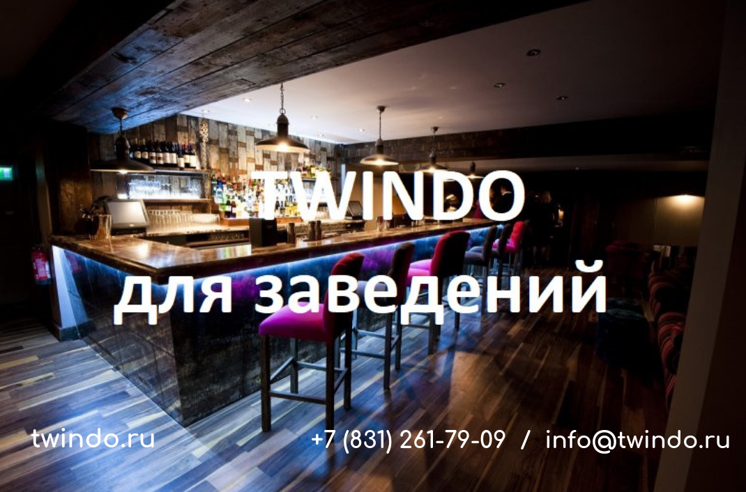 Twindo для заведений. Как правило, сервисом TWINDO пользуются заведения, которые уже используют какую-либо бонусную систему лояльности, будь то своя уникальная, карта лояльности или поддержка сторонней бонусной системы. Однако, это не обязательное условие подключения, а наоборот, отличный повод внедрить её, используя уникальность и технологичность нашего сервиса. В этом случае мы поможем вам составить и запустить вашу систему лояльности, чтобы это было выгодно вам и вашим клиентам. Интеграция с автоматизированными системами учёта: Наличие системы автоматизированного учёта, интеграцию с которой мы в состоянии осуществить на техническом уровне. Зачастую это всем известные и распространённый Iiko, R-Keeper и другие. Но бывают случаи, когда заведение пользуется своей собственной (даже самописной) системой. Именно эта информация важна, чтобы мы понимали, есть ли эта система в списке тех, с которыми мы уже работаем, для максимально быстрого внедрения, или же необходимо дополнительное
