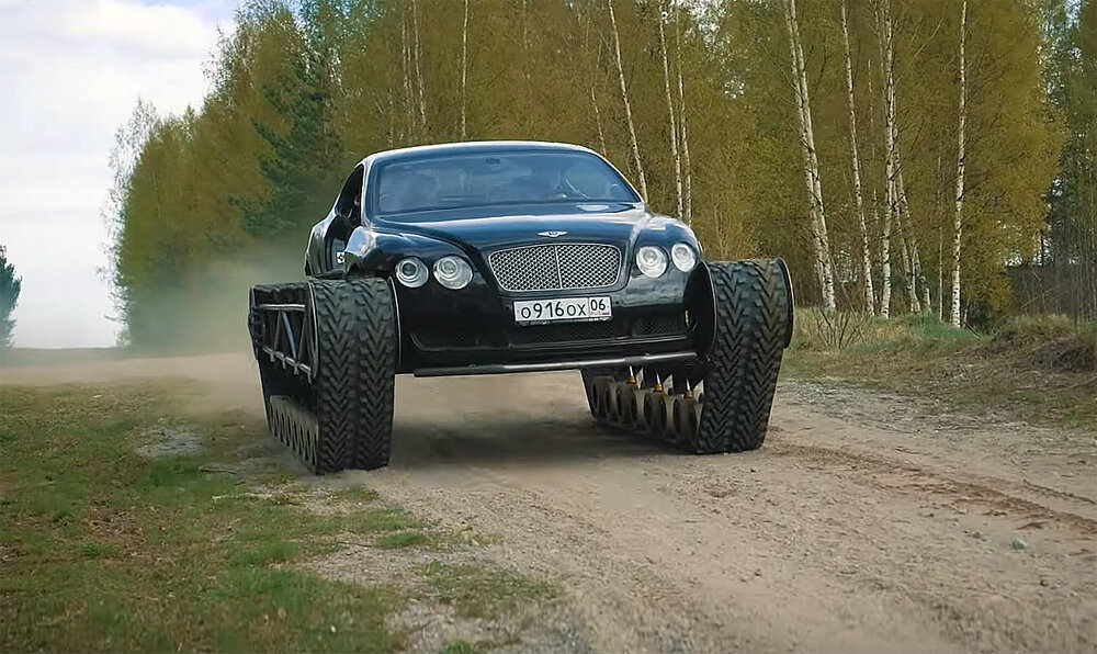 опыт умельцев из Питера Спроси любого иностранца, что такое Россия - и он в первую очередь назовет водку, березки, балалайку, медведей и автомат Калашникова. Ну, еще самовар и икру. Я бы добавил к этому списку танк. Конечно, у других народов тоже есть танки, но они не являются воплощением их характера. А у нас танк - это всё. Это и главное оружие Великой Победы, и народное средство решения всех проблем. Плохие дороги? Танк! Плохое правительство? Танк. Плохое настроение или, наоборот, свадьба - тоже на танке намного лучше и эффективнее. Не даром великий Михал Михалыч Жванецкий еще в 80-е написал знаменитую миниатюру про танк. Но у знаменитого автоблогера Константина Заруцкого, более известного как AcademeG, не было цели использовать танк как угрозу. Он решил сделать из старого Bentley Continental GT премиальный вездеход, поставив его на гусеницы. А скорее всего снегоход, как он говорил. Все блоги и СМИ, конечно, начали с последнего видео, где этот ультратанк уже едет. Но пр