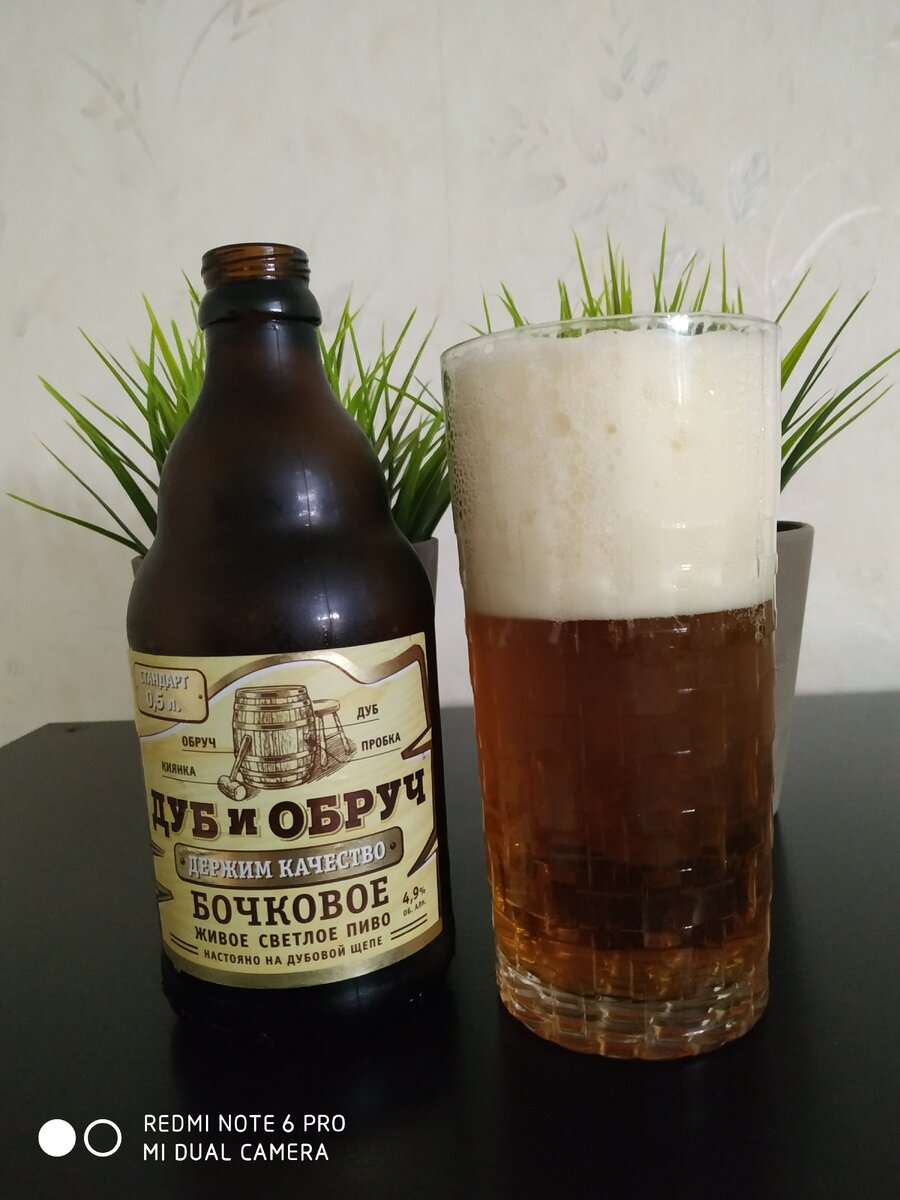 Всем привет. Сегодня речь пойдет о пиве которое варит Завод Трехсосенский "Дуб и Обруч Бочковое". Я очень долго обходил его стороной, так как у меня оно шло с ассоциацией с пивом от этой же пивоварни Варим Сусло Нефильтрованное - которое кроме красивой бутылки больше нечем не запомнилось. Когда я решил написать обзор и пошел ночью в ларек за покупками только оно меня и привлекло. "Дуб и Обруч Бочковое" - Живое Светлое пиво настояно на дубовой щепе именно это на этикетке большими буквами заявляет производитель. Верить или нет это уже второстепенный вопрос. Пиво пастеризованное, фильтрованное и соответствует ГОСТ 31711-2012. Есть на обратной этикетке есть различные награды которым наградили этот сорт: Gold Награда Monde Selection, Брюссель, 2017г., Награда DLG Awards, Франкфурт на Майне, 2016г., Награда International Beer challenge, Лондон 2015г. ТТХ: 12%/4,9% об. - по показателям больше похоже на эль Состав: Вода, Солод Ячменный светлый, Солод карамельный, Хмель. Описание напитк