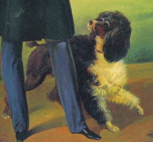 Пудель Гусар, любимая собака великого князя Николая, а потом – императора Николая I. Вот он, на портрете.