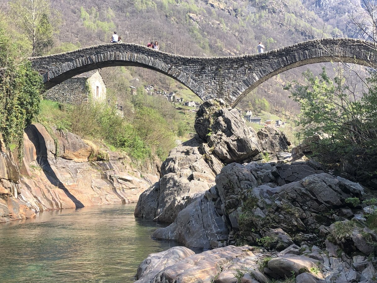 Все помним знаменитый прыжок агента 007 секретной службе Ее Величества с высоченной плотины в начале фильма "Золотой глаз"? Конечно прыгал агент 007 не с этого мостика. Эти 220 метров за 7 с половиной секунд он пролетел с дамбы Контра, которая находится возле устья реки Верзаска. Дотошные читатели могут спросить: "Какого ж лешего прилепил сюда автор этот маленький каменный мост?". Отвечаю: этот мост (Ponte dei Salti) расположен на той же самой реке, немного выше по течению. И уж если ехать на дамбу Джеймса Бонда, то не добраться до него будет преступлением. Но обо всем по порядку. Вначале дамба: С дамбы можно прыгнуть вниз. Почти как Джеймс Бонд (ну или каскадер, который делал трюк за него). Но пожалуйста, пожалуйста, не останавливайтесь на этом. Еще пол-часа вверх по течению и вы увидите это чудо: Река Верзаска отличается от других своей кристально чистой бирюзовой водой. Прозрачность необыкновенная. А на обкатанных миллионами лет камнях в русле реки так и тянет устроить пикни