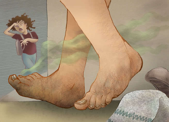 Запах ног- очень распространенная проблема современных людей. Корни ее происходят из одного места, а вот конечные причины различны. Ступня человека, как и любая другая часть человеческого тела выделяет пот в процессе терморегуляции температуры тела человека. Сам по себе пот практически не имеет запаха, он более чем на 90% состоит из воды. Мы привыкли держать ноги в тепле, и микроорганизмы обитающие на нашей ступне ввиду этого попадают в идеальные для них условия: Тепло и влага от пота, и омертвевшие клетки кожи. Как и людям попавшим в идеальные условия жизни, микроорганизмам становится очень хорошо, они начинают толстеть и размножаться. Так же как и у людей, жизнедеятельность микроорганизмов приносит свои дурнопахнущие отходы. Это и обуславливает появление запаха. Причин этому явлению может быть несколько: 1. Обувь, которая не обеспечивает необходимого кол-ва кислорода. Все мы можем вспомнить пример резиновых сапог: ноги потеют как в парилке. Этот длительный парниковый эффект и приводи