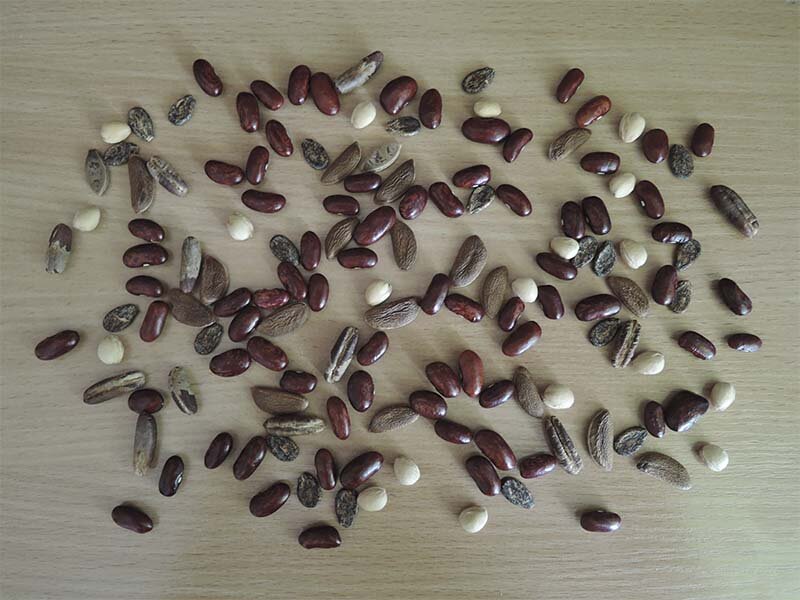 Когда-то я работала с детьми старшего дошкольного возраста. Так вот: им очень нравилось играть косточками (от фиников, хурмы, вишни, арбуза). Поэтому когда у меня появился свой ребёнок - тоже собиралась предложить ему такое занятие, когда немного подрастёт. Игры с косточками развивают мелкую моторику, тактильное восприятие, фантазию; а также положительно влияют на эмоциональное состояние детей. Баночку с косточками я подготовила заранее (добавила туда ещё фасоль), оставалось дождаться подходящего времени. Когда сын перестал тащить в рот всё подряд и стал меньше всё разбрасывать, я достала заветную баночку. Димке тогда было примерно 1,5 года. Знакомство с новым необычным материалом прошло отлично. Я была в приятном шоке: мой сын-непоседа так увлекся косточками, что просидел с ними около двух часов. Димка окунал руки в баночку, перебирал и рассматривал косточки, зачерпывал косточки ладошкой и высыпал их на пол, собирал обратно в баночку и пересыпал в крышку. Позже мы начали осваивать