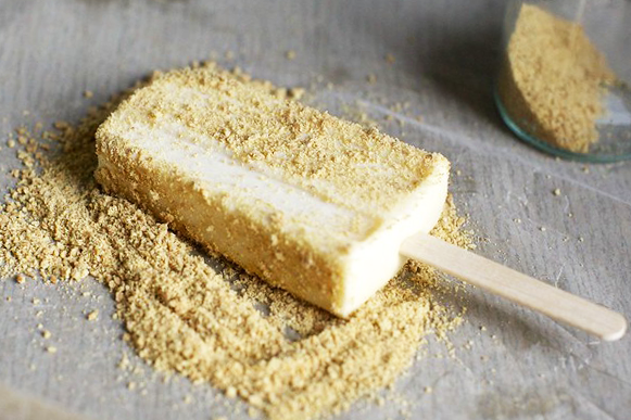 Этот рецепт домашнего эскимо удивил всю мою семью! Сладость и нежность сгущённого молока превосходно сочетается с терпкостью и ярким ароматом лайма. Печенье образует на поверхности эскимо хрустящую корочку, которая аппетитно ломается. Самое главное – мороженое делается супербыстро! То, что нужно для летнего сезона, когда не хочется стоять часами у плиты. Продукты для домашнего эскимо из 3 ингредиентов: · 350-400 мл сгущённого молока; · 1 лайм; · 100 г сухого печенья или крекеров. Как я готовлю домашнее эскимо из 3 ингредиентов: 1. Натираю на мелкой тёрке цедру лайма. Нужно, чтобы набралась одна столовая ложка. Из остального лайма выжимаю сок и процеживаю его через сито. 2. В чашу блендера закладываю сгущённое молоко, добавляю к нему цедру лайма и лаймовый сок. Взбиваю массу 2-3 минуты. 3. В формочки для эскимо наливаю смесь для домашнего мороженого и замораживаю его в течение 3-4 часов. 4. Когда эскимо будет готово, его нужно украсить крошкой из печенья. Для этого печенье или крекеры я