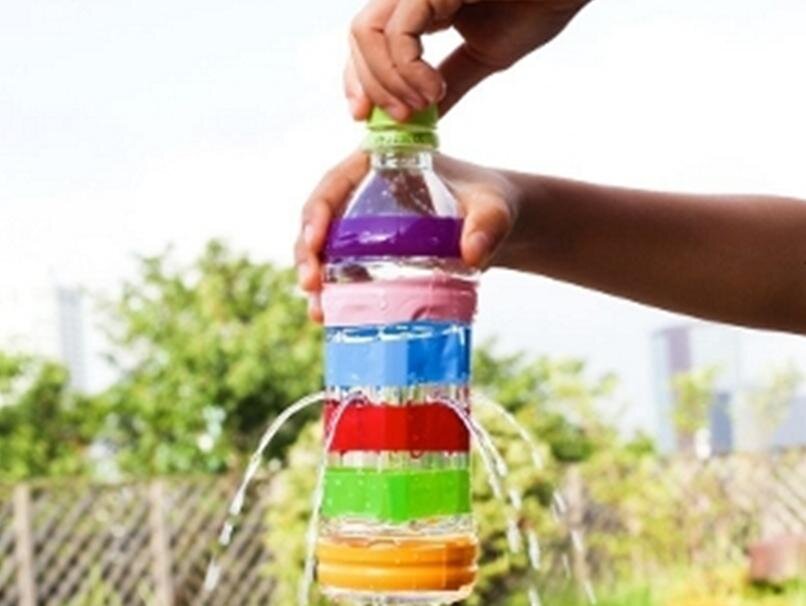 Нужен умывальник: что почем? Мы все понимаем, что руки мыть надо, но привыкли это делать в комфортных условиях. На пикнике, а порою и на даче нет раковины и канализации. Поливать воду друг другу на руки неудобно. Гигиенических салфеток тоже не напасешься. Так что, все взоры обращены в сторону пластиковой бутылки. Выезжаем на природу – надо сунуть руки в воду Самый простой рукомойник получается, если 5-ти литровую баклажку с водой перевернуть вверх дном и закрепить в развилке дерева. Стоит немного отвернуть крышку - и закапает вода. Однако емкость приходится периодически снимать, чтобы впустить порцию воздуха или дополнить водой. Ситуация улучшается, если в днище бутыли проделать отверстие, как на фото ниже. Теперь отворачиваем крышку и регулируем поток воды. После использования крышку закрываем. Однако такой рукомойник трудно наполнять водой, и мы перевернули емкость. Поток воды можно регулировать, открывая и закрывая крышку. На следующей фотографии видно, как бежит водичка из двух