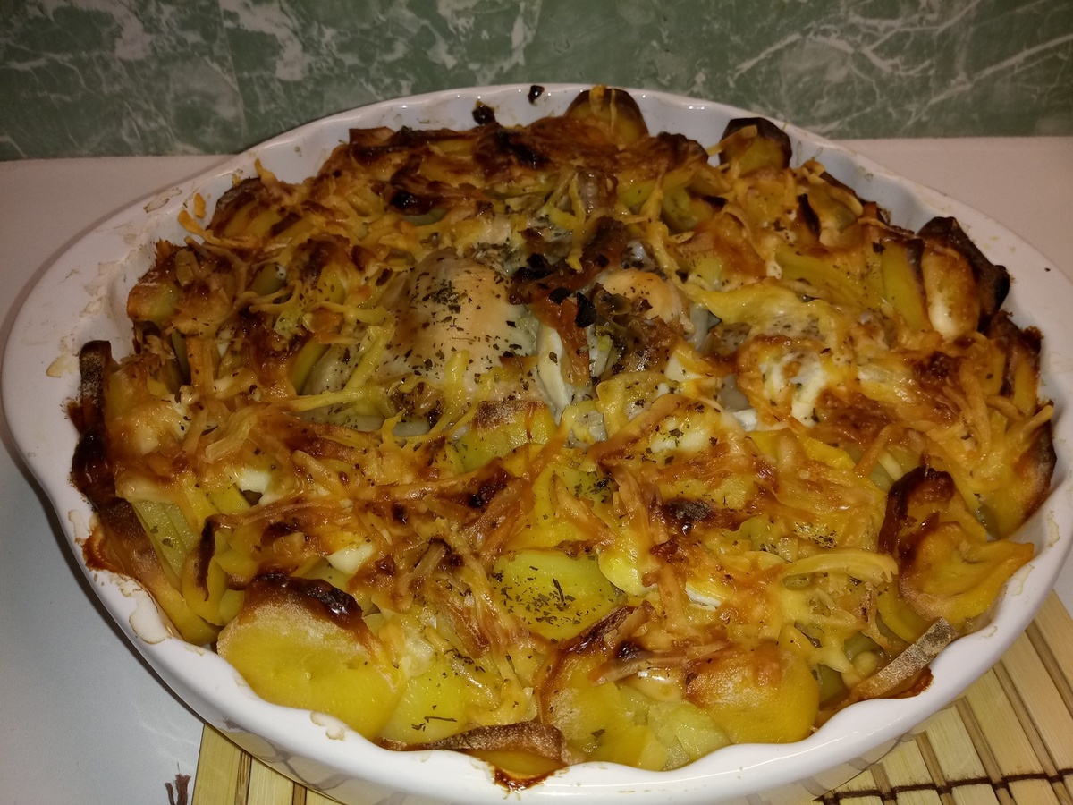 Курица в картофельном кольце! Сочная,нежная - очень вкусная!