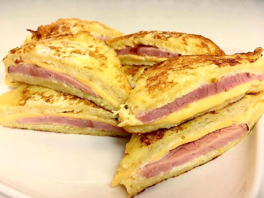 Ингредиенты: Тостовый хлеб Горчица Майонез Ветчина Сыр Яйцо - 2 шт. Молоко - 70 мл. Соль Острый соус Сливочное масло Берем 2 кусочка хлеба,один смазываем горчицей,второй майонезом,кладем на оба кусочка по ломтику сыры,и между ними кусок ветчины,далее разбиваем в миске два яйца,добавляем 70 грамм молока,и не много острого соуса,можно использовать "табаско" солим,перчим по вкусы,и все ото хорошо сбиваем,ставим сковородку на огонь,добавляем подсолнечное и сливочное масло,за тем наши сэндвичи хорошо обволакиваем в нашей яичной смеси,выкладываем на сковородку,обжариваем на не большом огне,по 2-3 минуты с каждой стороны.Замечательный завтрак готов,приятного аппетита.
