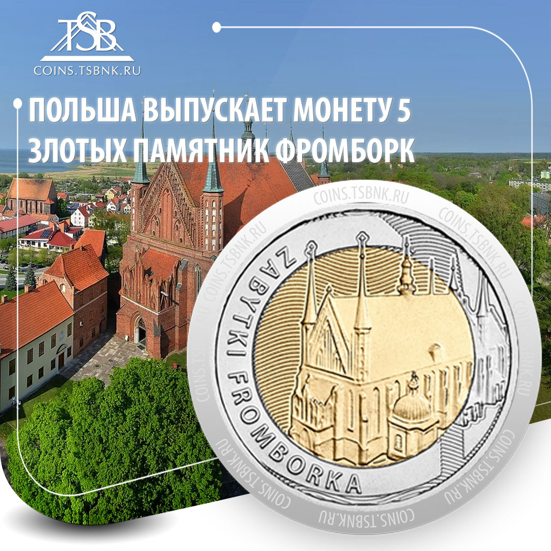 Монетный двор Национального банка Польши в мае 2019 года выпустил памятную монету Фромборк. Монета номиналом 5 злотых Из медно-никелевого сплава (CuNi). Фромборк небольшой городок в северной части Польши. Город известен миру потому что большую часть своей жизни в нём провёл Николай Коперник, Известный польский астроном, математик, экономист эпохи Возрождения. Николай Коперник является автором гелиоцентрической системы мира, система описывающая представление того, что Земля и другие планеты системы вращаются вокруг Солнца. Труды Коперника положили начало Первой научной революции, где сменилось парадигма о модели мировоззрение Птолемея, в которой Земля более не считалась центром вокруг которой крутятся другие планеты, а её место заняло Солнце. Коперник переехал в Фромборк в 1512 году, Где начал свою деятельность от каноника, до активного участника в управлении епархией. при всём том что Коперник уделял большое внимание духовной деятельности, он не прекращал научные исследования. А в ка