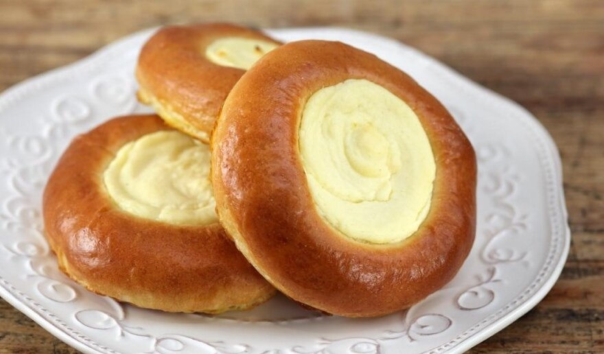 Что мы знаем о ватрушках?Ватрушки -это лепешки из теста и начинки,в нашем случае это творог. Что нам понадобится для приготовления: Чтобы сделать тесто: -молоко 200мл -масло растительное-2ст. ложки +для смазывания -мука 500гр -дрожжи 7гр -сахар 2 ст.ложки -соль 1ч.ложки Для начинки необходимо: -творог 400гр -сметана 2ст.ложки -желток 1шт. ванилин -1 пакетик. Для смазывания ватрушек: -яйцо 1шт и молоко -1ч.ложка Способ приготовления: 1.Подготовить необходимые продукты 2.Приготовить тесто ,подождать 20 мин. 3.Смазать чашку растительным маслом,замесить тесто в виде шара и положить в чашу ,накрыть плёнкой и оставить на 1 час. 4.Приготавливаем начинку.Для этого ,берем пустую чашку ,кладем творог ,замешиваем его,дабы не было комочков.Добавляем в творог сахар,желток,ванилин,сметану и перемешиваем.Начинку убрать в холодильник . 5.Тесто разделить на 12 равных кусочков,скатать в шарики.Противень застелить пергаментом,положить шарики на расстояние друг от друга на 4 см.Далее донышком стакана