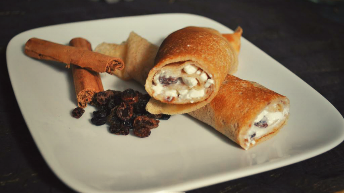 Для приготовления блинчиков с творогом и орехами нам потребуется: 115 г простой муки, 1 яйцо, 200 мл молока, 2 ст.л. подсолнечного масла, 2 ст.л. сахара, щепотка тёртого мускатного ореха, кусочки лимона, 250 г творога, щепотка соли. Время приготовления: 30 минут. Количество порций: 4. Калорийность: 290 ккал. Просеем муку, соль и мускатный орех в миску. Сделаем углубление в середине. Добавим желток и половину молока. Взобьём до образования однородного теста, затем добавим оставшееся молоко. Взобьём белок в миске в крепкую пену и аккуратно добавим тесто. Нагреем 1 ч.л. подсолнечного масла и немного сливочного масла на сковороде. Вольём такое количество теста, чтобы оно покрывало дно. Готовим 2 минуты до золотистого цвета, затем перевернём (не эксперементируйте с подбрасыванием, это чревато круглым жирным кипятком на потолке, воспользуйтесь лопаточкой) и готовим ещё 2 минуты. Сделаем ещё 5 блинов таким же образом. Сложим стопкой. Смешаем творог и сахар в миске. Добавим орех. Разделим начи