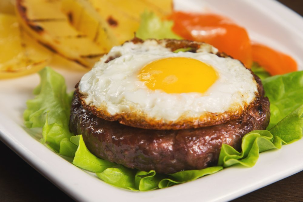 Бифштекс говяжий рубленый - если правильно приготовить и подать это блюдо, то у Вас получится не просто котлета, а мясное удовольствие, которое непременно поднимет Вам настроение. порций - 11 шт., время приготовления - 60 мин. Чтобы приготовить говяжий рубленный бифштекс нам понадобятся: · говядина (задняя часть, лопатка) - 1 кг, · говяжье или свиное сало или шпик - 100 гр., · топленое свиное сало (смалец) - 0,5 ст.л., · сливочное масло (для заливки) - 0,5 ст.л., · плавленный сырок - 11 пластинок, · молотый перец, · лук репчатый - 2 шт., · соль. Говяжий рубленный бифштекс готовится так: 1. Мясо разрезать на тонкие ломтики и хорошенько изрубить, лучше использовать одновременно два ножа. Настрогать сильно охлажденное сало или шпик (предварительно срезав шкуру) и мелко изрубить (теплое сало не получится так мелко нарезать). 2. 80 гр. рубленого мяса, смешать с 10 гр. сала, сформовать круглые бифштексы толщиной 2 см., посолить, поперчить и жарить в смальце. Выложить бифштексы, а в остав