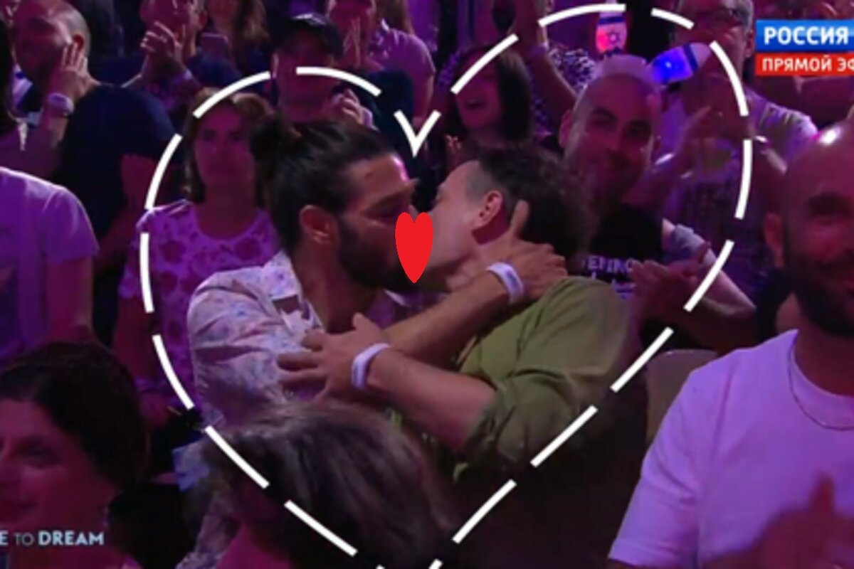 Во время трансляции полуфинала Евровидения на телеэкранах россиян крупным планом целовались мужчины.