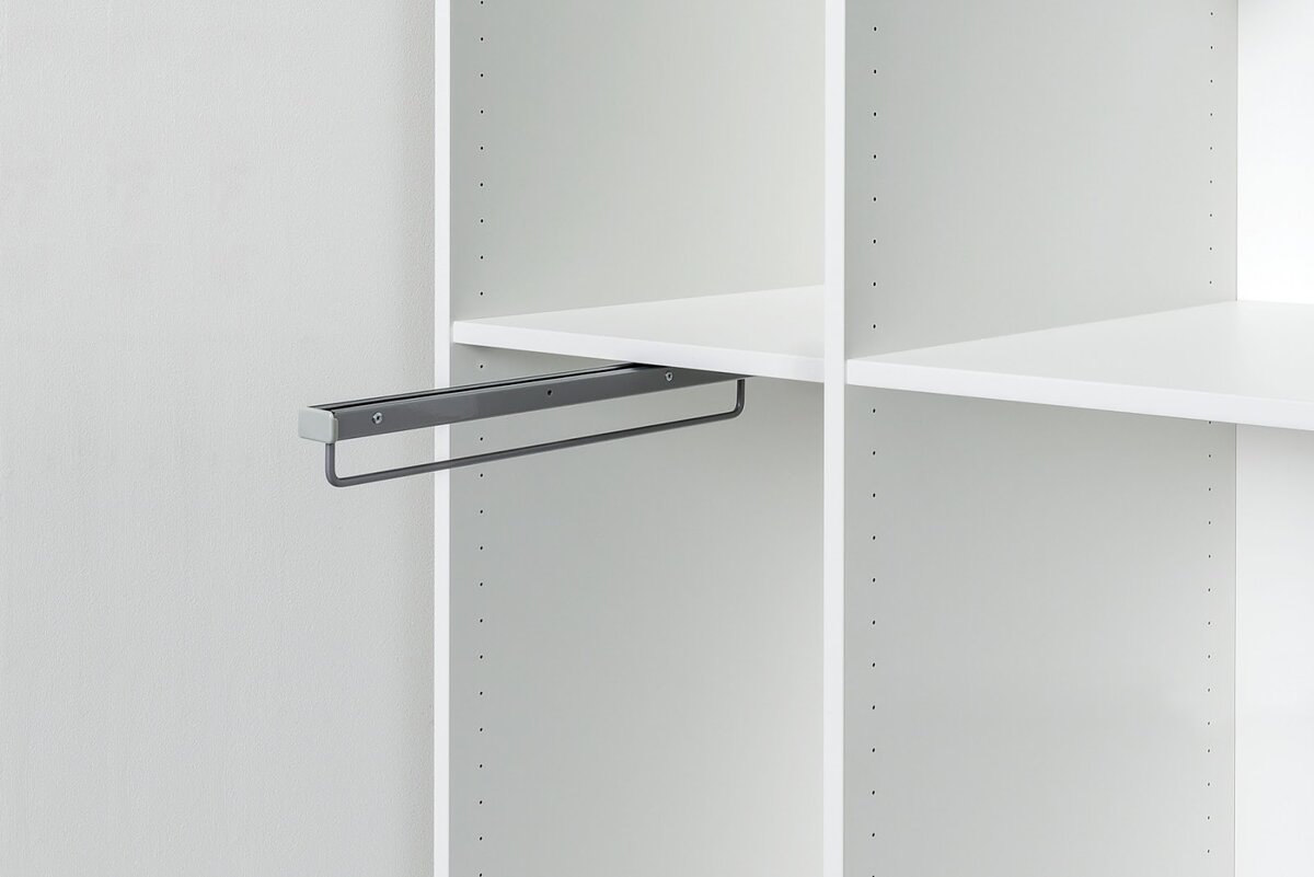 Пантограф — специальное приспособление, которое позволяет опускать и поднимать штангу. Такие конструкции довольно дороги, но незаменимы в высоких шкафах, когда вам приходится задействовать место под самым потолком.