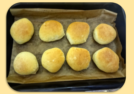 Ингредиенты: 1. Дрожжи – 2 ч.л. 2. Вода (теплая) – ¼ стакана. 3. Молоко – 1 стакан. 4. Сахар – 3 ст.л. 5. Соль – 1 ч.л. (с верхом). 6. Масло сливочное – 3 ч.л. 7. Яйцо – 1 шт. 8. Мука – 450 гр. (3,5 стакана) или больше. Приготовление: 1. В миске растворяем дрожжи в теплой воде и добавляем сахар. Перемешиваем. 2. Добавляем молоко, сливочное масло и яйцо. Перемешиваем. 3. Муку вместе с солью просеиваем через сито в миску и замешиваем тесто. Накрываем полотенцем и оставляем на 1,5 часа (можно 1 час) в теплое место. 4. Поднявшееся тесто вылаживаем на стол присыпленный мукой. Раскатываем пласт. Разрезаем на прямоугольные дольки. 5. Включаем духовку на разогрев. А тем временем дольки вылаживаем на противень и ждём пока духовка дойдёт до готовности. Это в среднем занимает 20-25 минут. 6. Ставим противень в духовку. Как булочки зарумянятся, можно вытаскивать. Выход от 18 до 24 штук. Ваша выпечка готова! Наливайте чай и снимайте пробу. А если ещё и варенье рядом, то вкус будет говорить