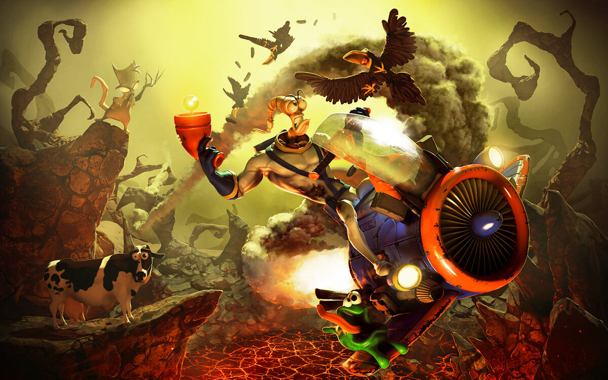 Добро пожаловать в клуб знакомств с персонажами популярных игр! В этот раз вас повстречают главные персонажи и боссы легендарной серии SEGA-игр про непобедимого дождевого суперчервяка по имени Джим! ### Червяк Джим (Earthworm Jim) ### Здоровый дождевой червяк, нарастивший мозгов и мускулов, словивший ультра-высокотехнологичный-неразрушимый-супер-космический-кибер-скафандр, украденный у доктора Обезъяноголова, создававшийся для Королевы Слизнезадницы и который должен был вернуть Психо-ворон. Однако Псих-ворона наложал, и скафандр упал на голову зазевавшегося Джима. В друганах инопланетный щенок, а влюблен он в девочку-пчелку. ### Психо-ворон и Профессор Обезьяноголов ### Прокачанный ворон в желтом скафандре, проср...ий скафандр, который заполучил Джим. Жутко, страшно ненавидит и стремится аннигилировать червяка. В сиквеле игры похитил подругу-Принцессу, чтобы ... ЖЕНИТЬСЯ! Профессор Обезьяноголов или Обезьяна Профессороголов, живой пример действующего сумрачного гения. Постоянно изобре