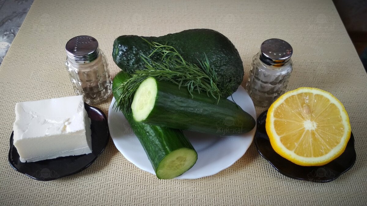 Авокадо и огурец хорошо моем. Авокадо тоже разрезаем пополам, вынимаем косточку, очищаем от кожуры: