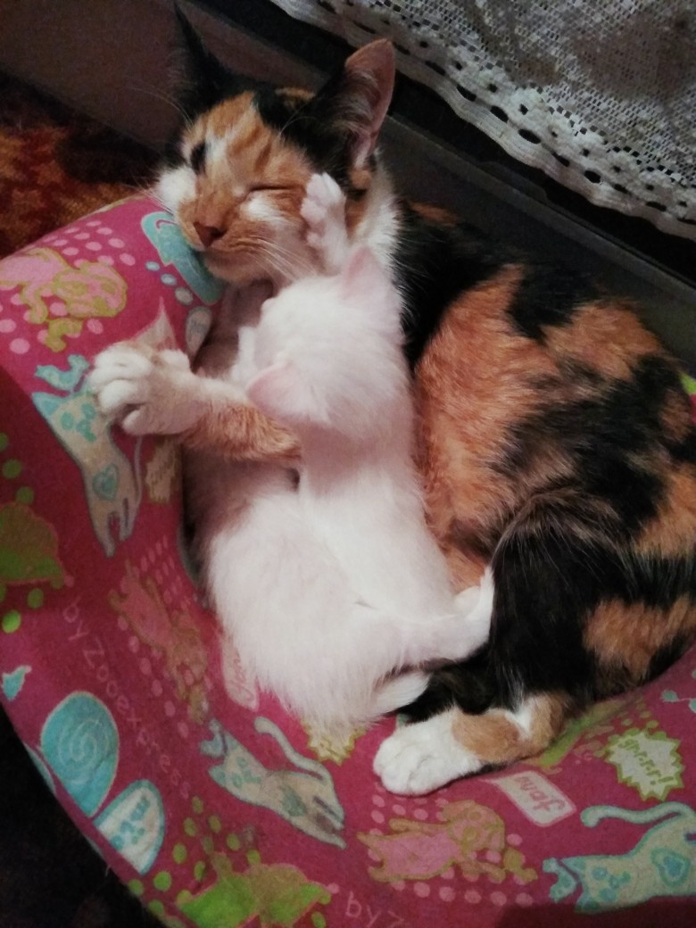 Не всегда есть выбор. Ты знаешь, как было бы правильно, но мы всегда предполагаем, а там уже как пойдет... Стерилизация Бубы была в приоритете, волонтер Влада уже знала о ее интересном положении, но здоровье животного не позволило сделать процедуру. И на свет появились они: Кошка Буба теперь мама! Немного о ее жизни в приюте... С момента их рождения мы вместе с вами следили за их жизнью на передержке у Влады: Наглость - второе счастье! Маме с ее котейками не скучно!))) И вот 6-го мая произошел маленький праздник - бусинкам был месяц! Хочется пожелать их мамуле крепкого здоровья, она самая настоящая опора для волонтера! Котейкам быть здоровыми, активными, воспитанными детками, которые скоро познают полностью весь кошачий этикет. Мы уверены у них у всех будет просто прекрасная судьба!))
