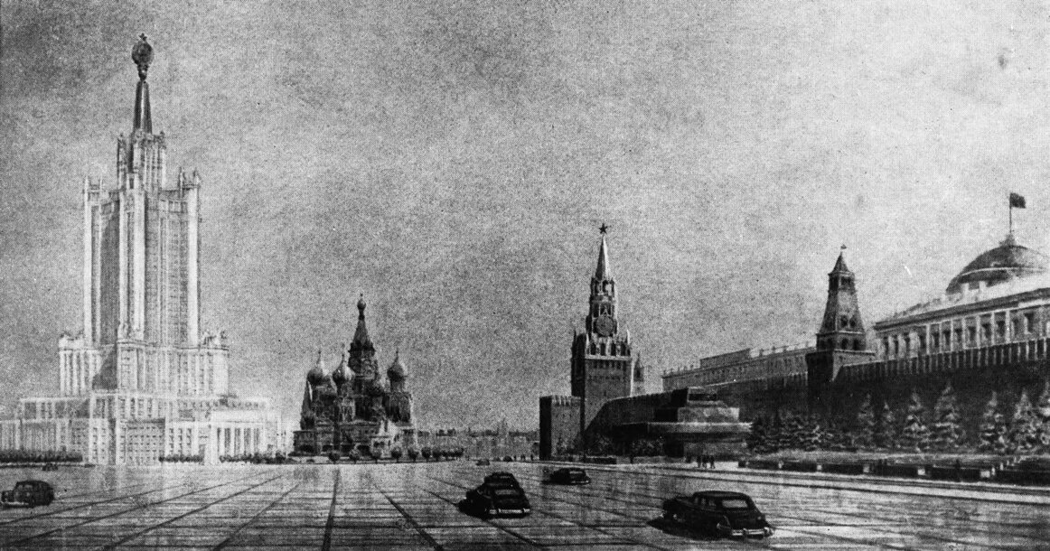 «Надо отдать себе отчет: почему в 1947 году, всего через два года после окончания страшной войны, которая опустошила большую часть промышленно развитых регионов, нанесла сокрушительный удар по экономике страны, лежавшей в руинах, где люди жили в бараках, на чердаках и в подвалах, а хлеб продавался по карточкам, в столице этой страны вдруг неожиданно начинают строительство восьми зданий, требующих огромных материальных и людских ресурсов? Это может показаться нерациональным, если не принимать во внимание самый вероятный расчет Сталина — наглядно продемонстрировать всему миру, что СССР сохранил свой промышленный потенциал. Высотка в Зарядье была презентацией Москвы, витрины СССР. Высотка МГБ в Зарядье просто не соответствует логике времени. По духу той эпохи там вполне могло бы разместиться Министерство атомной промышленности. Потому что к концу сороковых уже стало понятно, что будущее не за карательными органами, а за атомной энергетикой», — считает директор музея архитектуры. Действительно, ведь тот же Берия помимо всего прочего являлся и куратором советского атомного проекта, «нашим Лаврентием Павловичем», как нежно говорили о нем тогда некоторые физики-ядерщики.