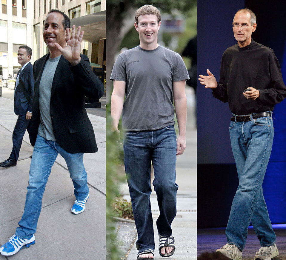 Этот стиль создал Стив Джобс, известный разработчик техники Apple, потому что он всегда ходил в джинсах и своем фирменном, черном джемпере.
