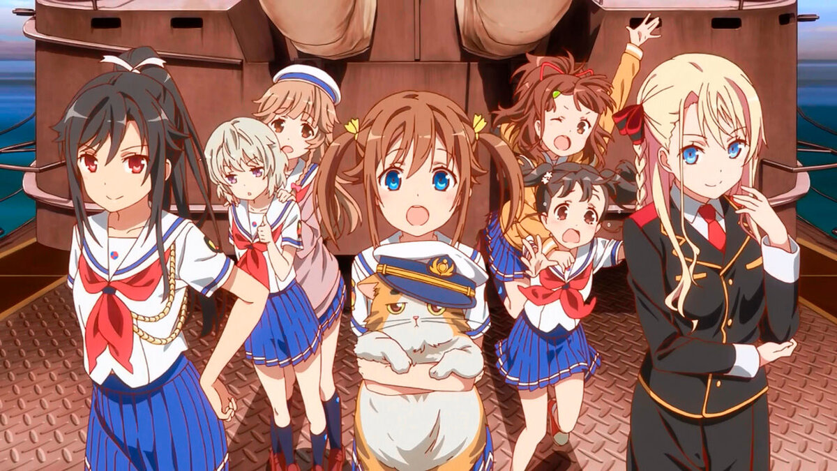 "Морская академия" совершенно справедливо считается "плавучим" аналогом "Девочек и танков". Наблюдать мы с вами будем неплохо отрисованное житье-бытье экипажа эсминца "Хареказе" ("Солнечный ветер", если интересно), который за один сезон и несколько ов успеет наворотить немало интересных дел и традиционно для жанра превозмочь в нужные моменты. Все компоненты, знакомые смотревшим "Танки" зрителям (и обычно с них на данный тайтл и приходящих) в наличии: милые девочки в форме стреляют по врагам, попутно разбираясь в отношениях друг с дружкой и "качая скиллы". Некоторая разница есть лишь в структуре повествования - авторы предпочли сделать акцент на взаимоотношениях экипажа и сюжете. Если в "Танках" эти компоненты казались скомканными (вот наши, вот враги, вперед!), то в "Морской академии" сценаристы оторвались по полной. Так что результат вышел ближе скорее к повседневно-слайсовому, чем военно-драчливому "полюсу". В целом команда Production IMS сделала интересный проект, который долгое в